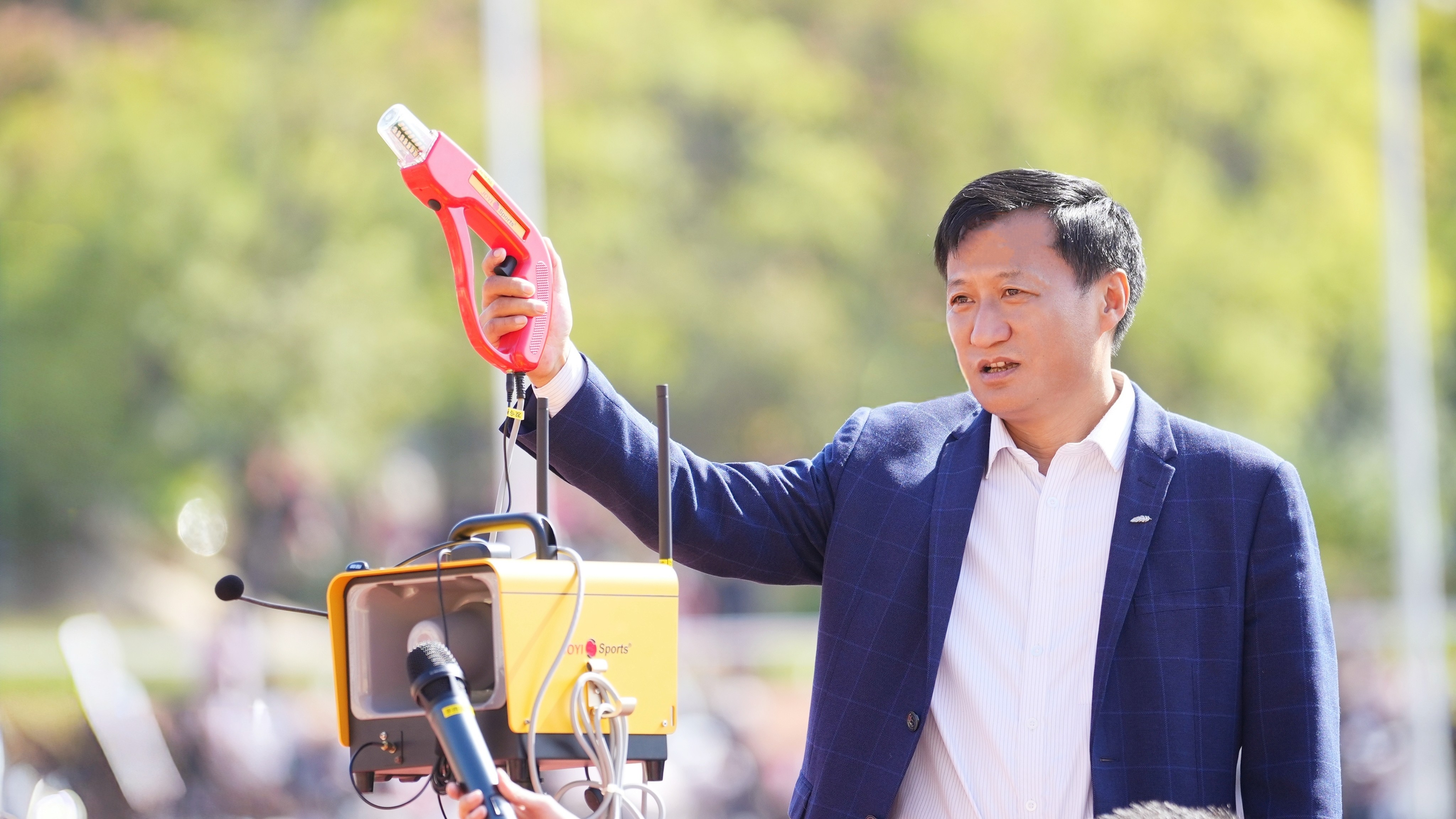 党委副书记、校长彭淑贞打响运动会第一声发令枪。