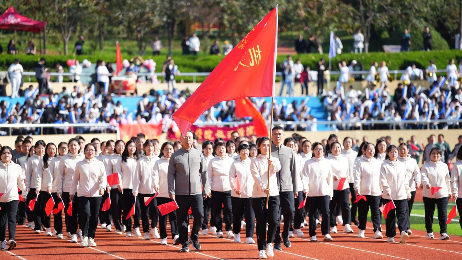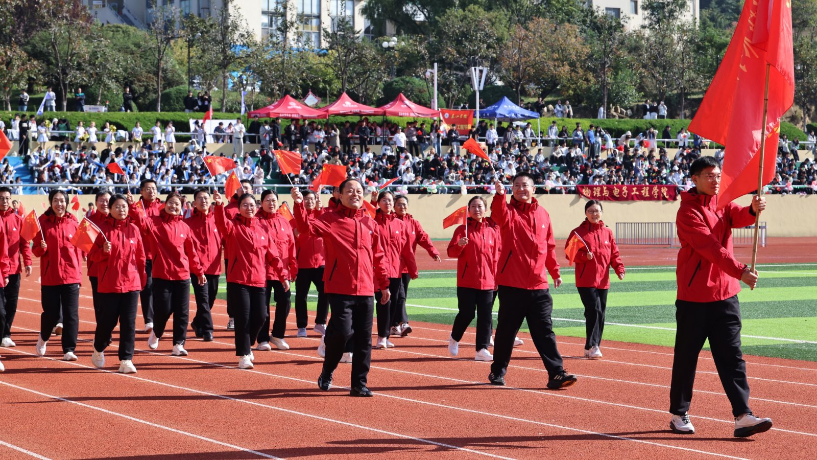 随着雄壮的国歌声响起,五星红旗在全体师生的注目礼中缓缓升起。开幕式上,党委委员、副校长魏新江致辞。他指出,体育强则中国强,国运兴则体育兴。运动会不仅是速度与力量的较量,更是精神与意志的磨砺。他希望全体运动员能发扬“更快、更高、更强”和“团结、友谊、进步”的奥运精神,赛出风格、赛出水平、赛出友谊,全面展示我校师生蓬勃向上的精神风貌,争取运动成绩与体育道德风尚双丰收;希望全体裁判员、工作人员和志愿者能坚持公开、公正、公平的原则,恪尽职守,做到公正裁判、热情服务,确保各项竞赛的顺利进行;希望全校师生员工能把体育运动当作一种习惯,在运动中感受生命的活力与美好,在奋斗中体验成功的喜悦与自豪。