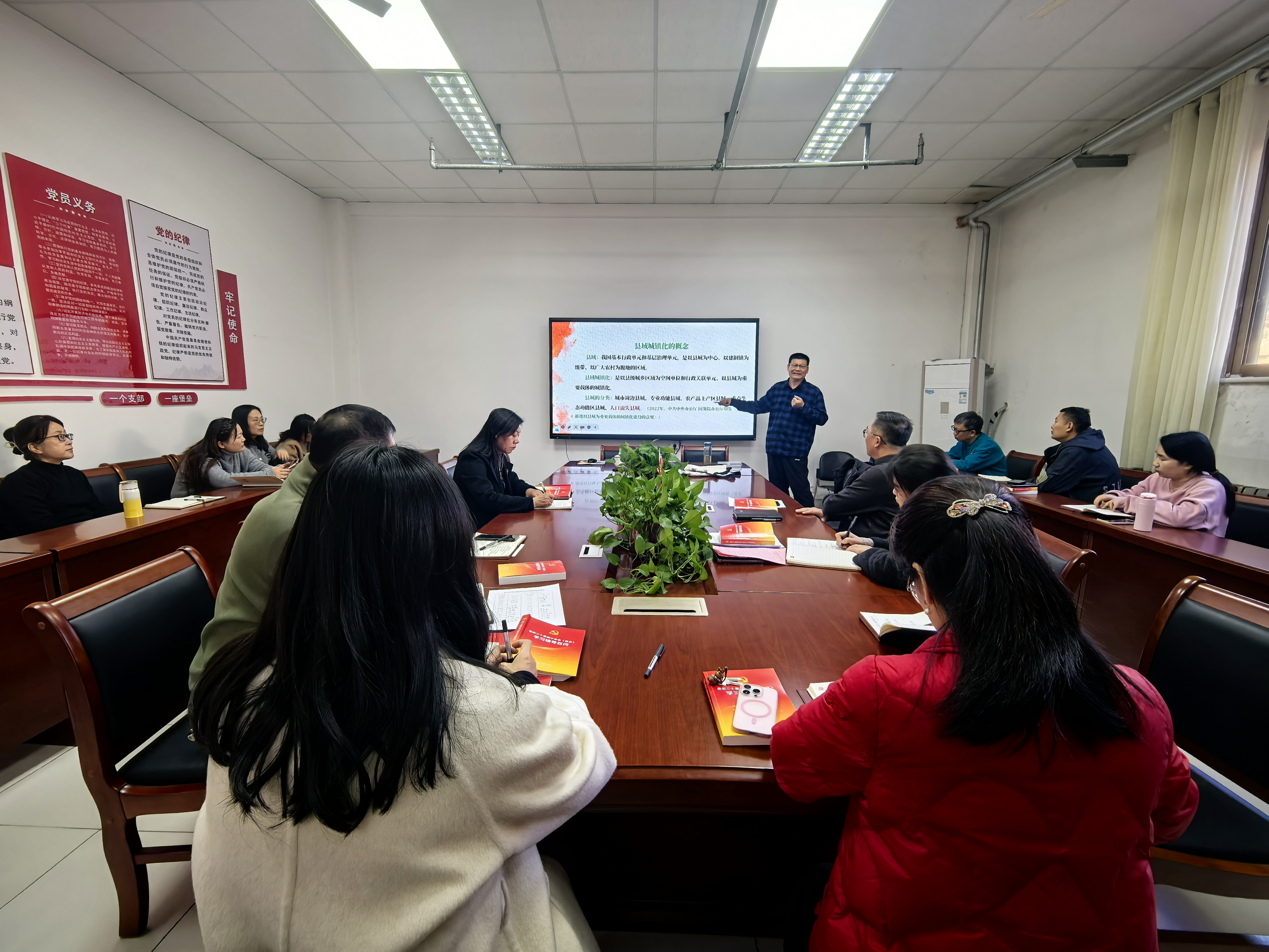 11月25日下午,学习贯彻党的二十届四中全会精神学校宣讲团成员、马克思主义学院教授赵庆海以“以人为本 推进县域城镇化建设”为主题在图书馆开展宣讲。图书馆党支部全体党员及入党积极分子参会。