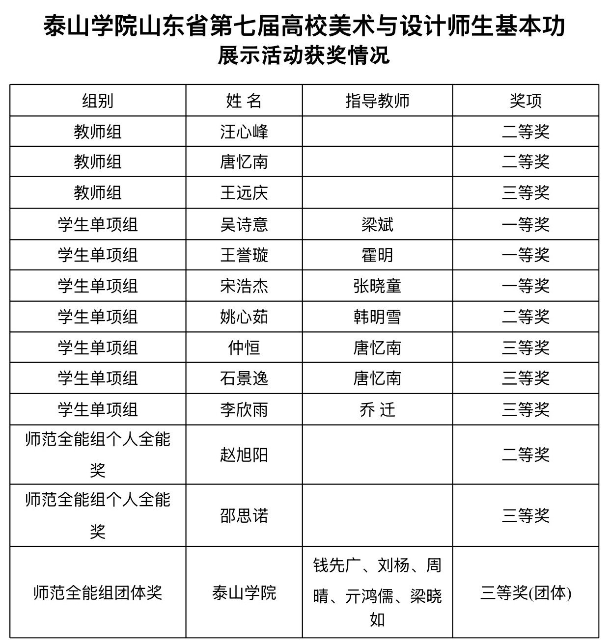 山东省第七届高校美术与设计专业师生基本功展示活动获奖结果揭晓,我校师生在校教务处的带领下,凭借扎实的专业功底和出色的创作能力,在多个组别中斩获佳绩,充分展现了学校在美术与设计教育领域的教学成果与人才培养实力。