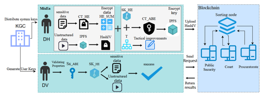 该成果聚焦于司法区块链场景中涉案财产数据共享的隐私泄露与密文计算难题,创新性的提出了一种融合策略增强的属性基加密(ABE)与同态加密(HE)的混合安全方案。实验结果表明,该方案在加密效率、策略匹配速度和安全性能上均优于传统方案,为构建安全、高效的司法区块链协同办案环境提供了新的技术思路。