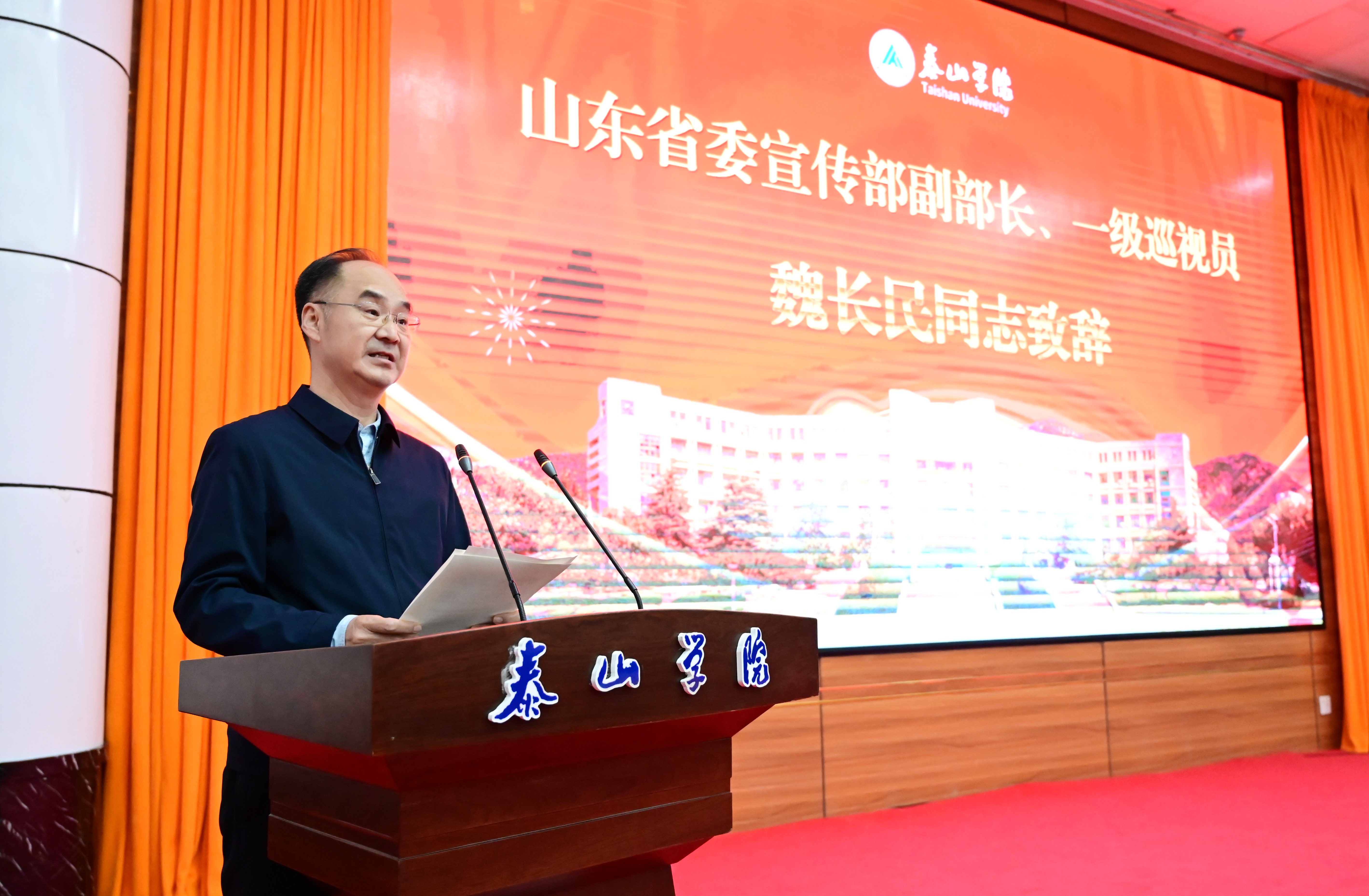 12月5日至7日,泰山文化与中华文明学术会议在我校国际交流中心召开。省委宣传部副部长、一级巡视员魏长民,泰安市委常委、宣传部部长、市委教育工委书记马保文,学校党委书记岳宝德出席会议并致辞。党委委员、副校长李峰主持会议,党委委员、副校长张守凤参加会议。来自德国海德堡科学院、美国新泽西州立罗格斯大学、北京大学、中国人民大学、北京师范大学、山东大学、山东省社会科学院等高校和科研机构的近百名专家学者,紧紧围绕泰山文化与中华文明这一主题展开学术交流。