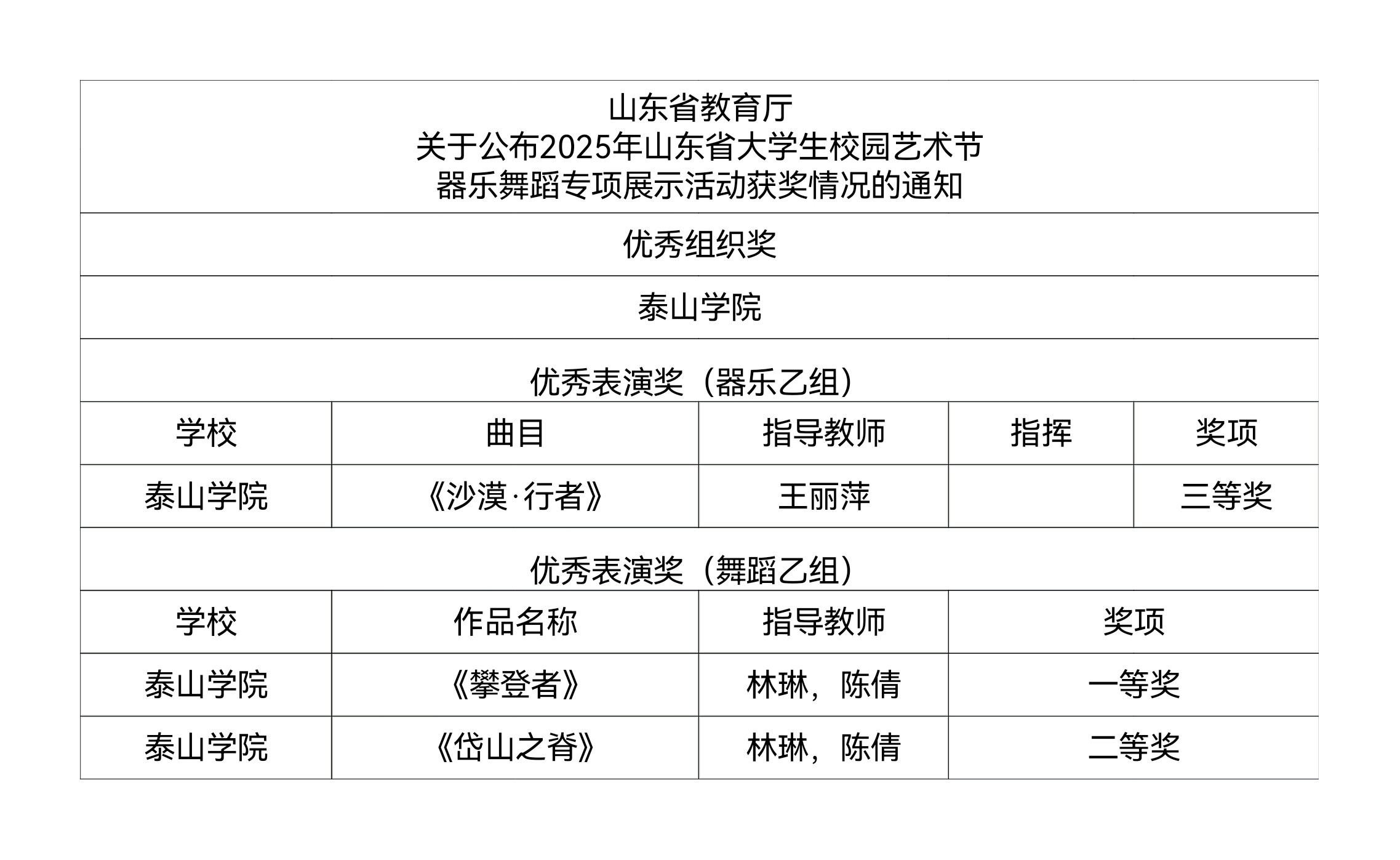 近日,山东省教育厅公布了2025年山东省大学生校园艺术节器乐舞蹈专项展示活动获奖情况,艺术学院在此次活动中表现卓越,收获多项荣誉,充分展现了学院在艺术教育领域的深厚底蕴与强大实力。