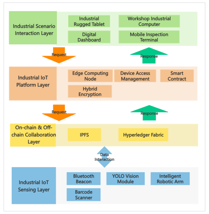 该研究针对传统工业数采平台存在的数据易篡改、多技术协同性差、缺乏端到端可追溯性等痛点,设计并实现了兼具安全和高效的BMTIIOT平台,创新性地构建了 “边缘采集-区块链存证-云端处理-工业场景交互”四级架构,全面覆盖工业生产全流程数据采集需求,可为工业物联网提供了可信数据支撑。该论文核心技术成果已斩获第19届“挑战杯”全国大学生课外学术科技作品竞赛 “揭榜挂帅”国家二等奖。