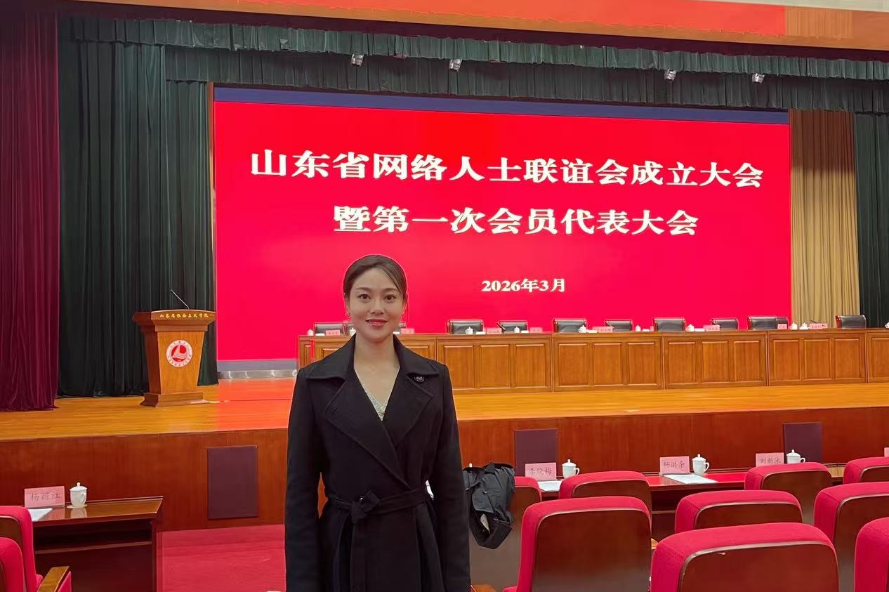 近日,山东省网络人士联谊会成立大会暨第一次会员代表大会在济南召开,选举产生了第一届理事会领导机构,泰安市政协委员、民革泰山学院支部党员王妮娜被聘为首届理事。