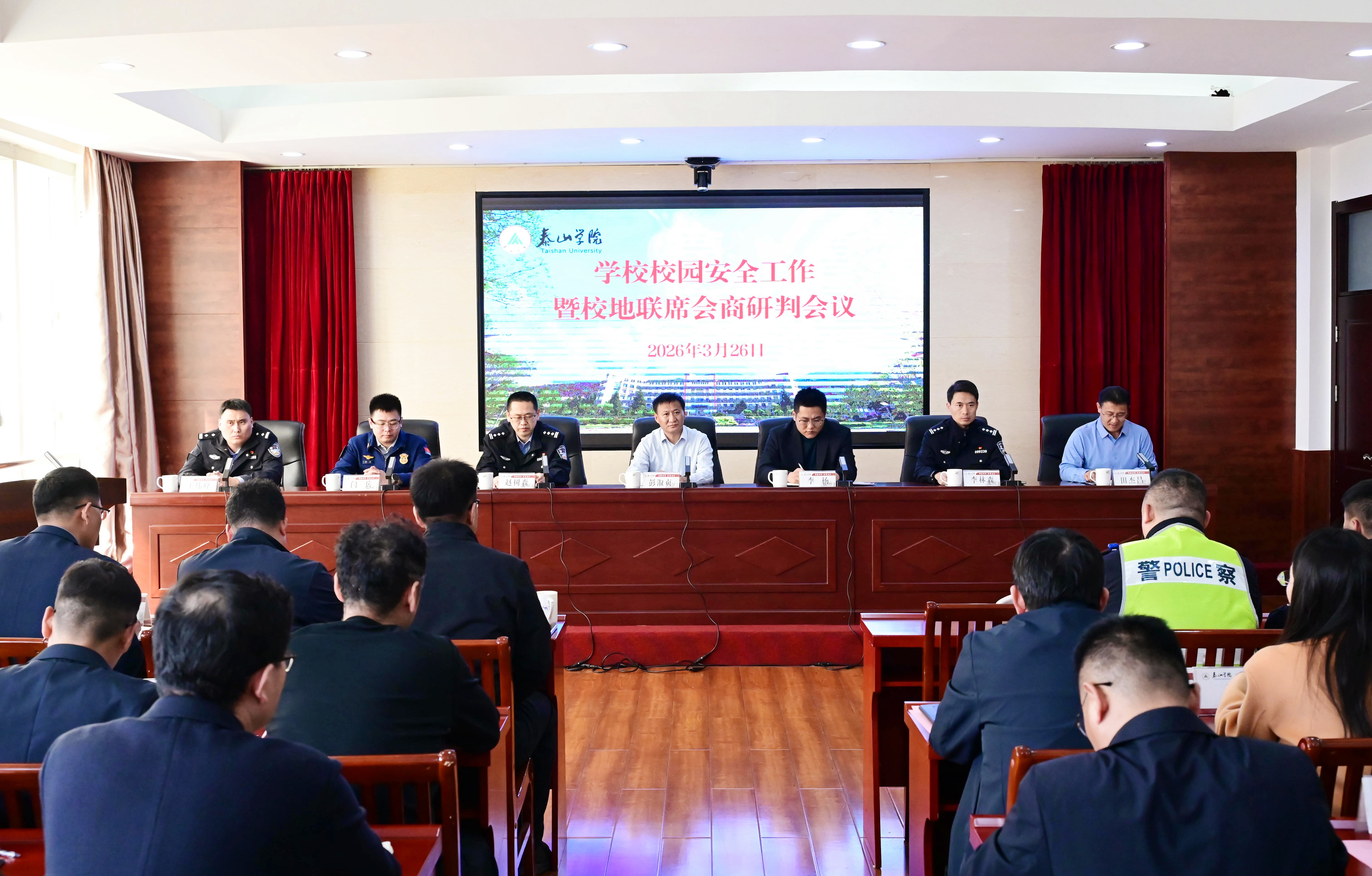 3月26日下午,学校在第三会议室召开校园安全工作暨警校联席会商研判会议。学校党委副书记、校长彭淑贞,中共泰安市委网络安全和信息化委员会办公室李杨、泰安市公安局政治安全保卫支队副队长赵树森、泰安市公安局交通警察支队岱西大队副队长李林森、泰山风景名胜区消防救援大队副大队长闫冰、泰安市公安局岱岳区分局粥店派出所王伟峰出席会议,会议由学校党委委员、副校长田杰昌主持,学校安全生产委员会成员单位主要负责同志,各二级学院党委书记、党委副书记参加会议。