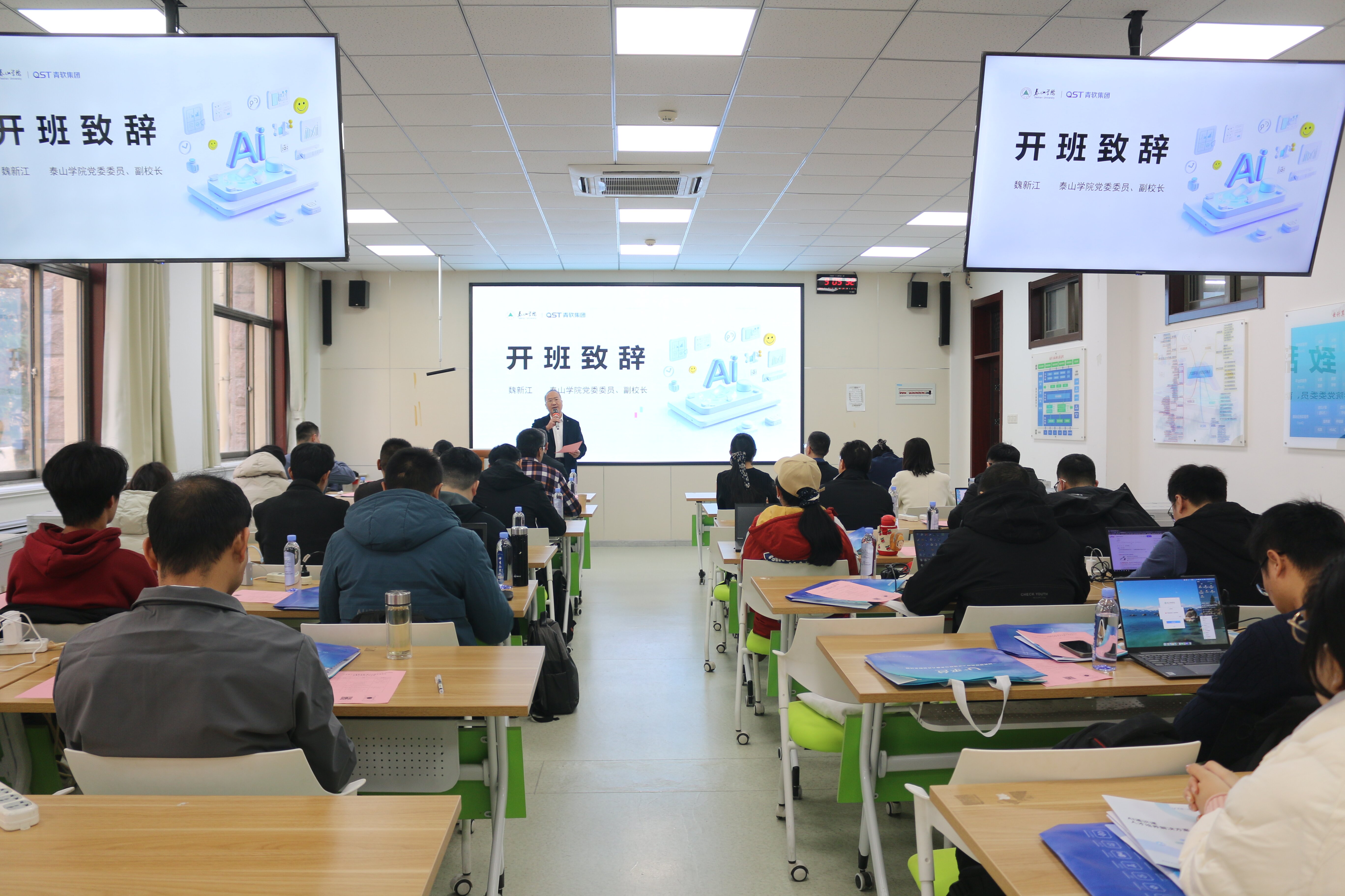 魏新江在致辞中表示,本次人工智能学堂是学校立足学科优势、深化产教融合的重要实践,期待以此次活动为起点,进一步深化校校、校企合作,共同为山东省乃至全国的国产化技术人才培养贡献更大力量。青软创新科技集团总经理李战军在致辞中表达了与各方携手,以“产教融合”的确定性应对AI时代不确定性的愿景,希望通过多方协作探索AI教学新路径,培养更多产业急需的复合型人才。数学与统计学院负责人希望参培教师珍惜学习机会,深耕技术实操、交流教学心得,把前沿技术与优质经验带回教学一线,切实提升人才培养质量。