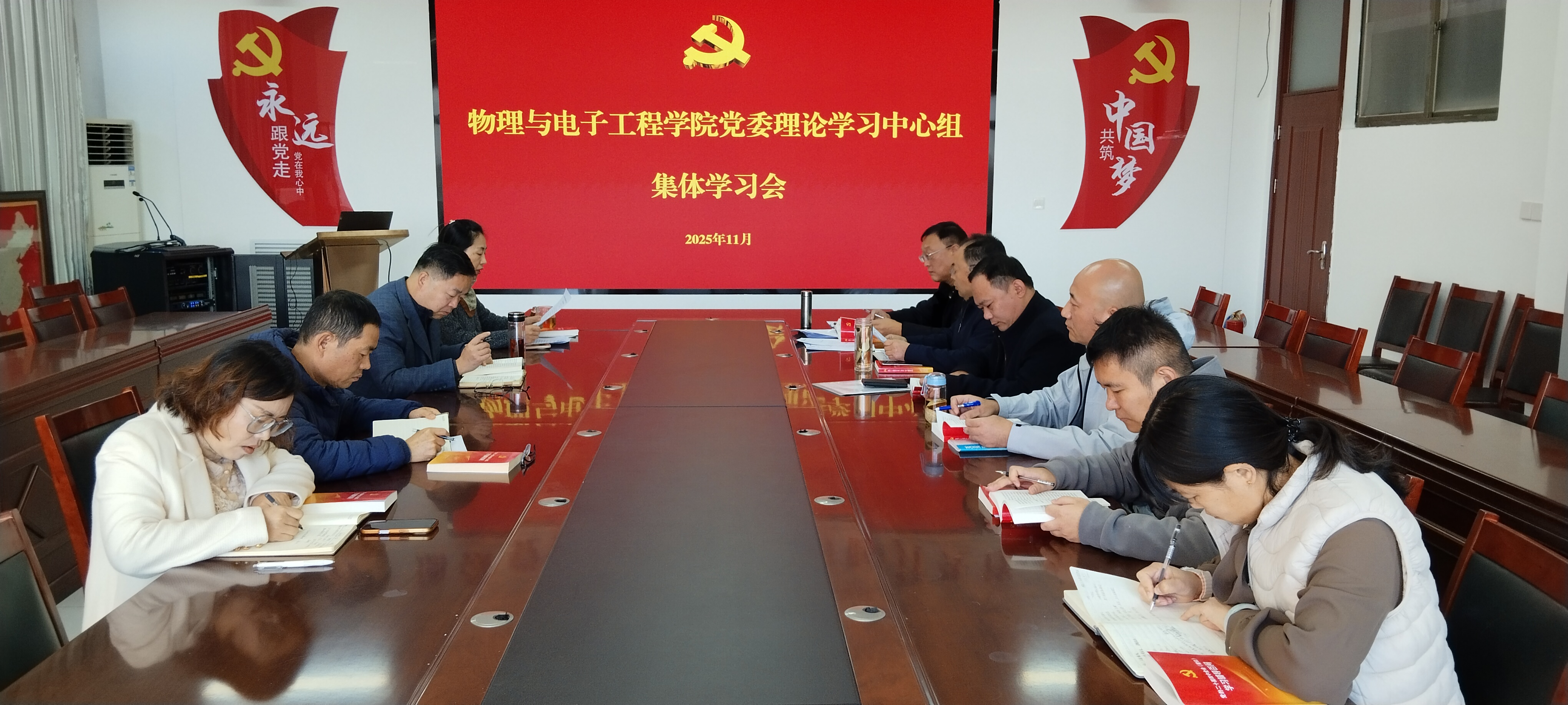 11月25日上午,物理与电子工程学院在二号综合楼B3015会议室召开第11次党委理论学习中心组专题学习会,深入学习领会党的二十届四中全会精神。学院党委理论学习中心组成员参加学习研讨,学院正处级干部、各党支部书记列席,会议由学院党委主要负责人主持。