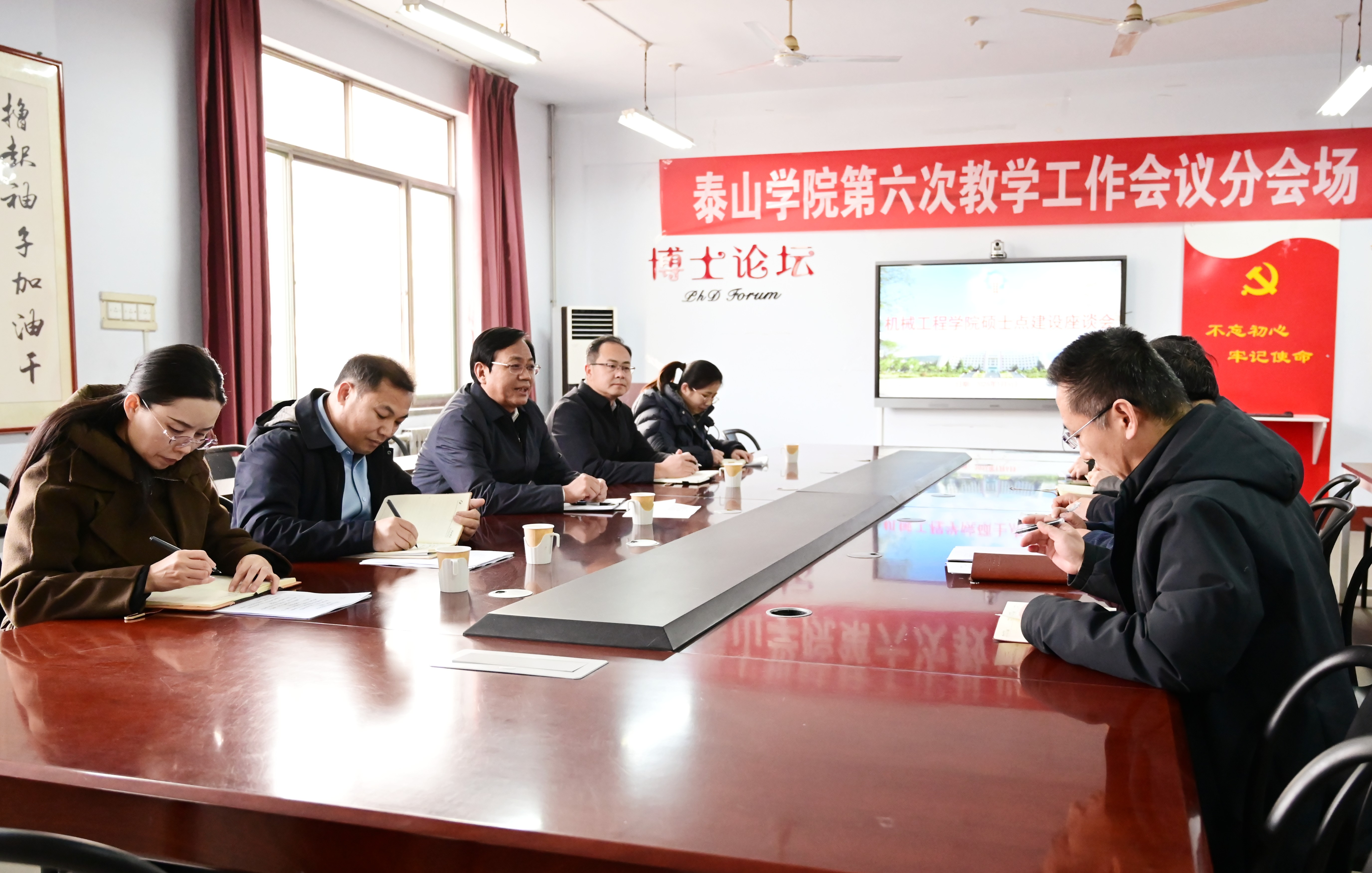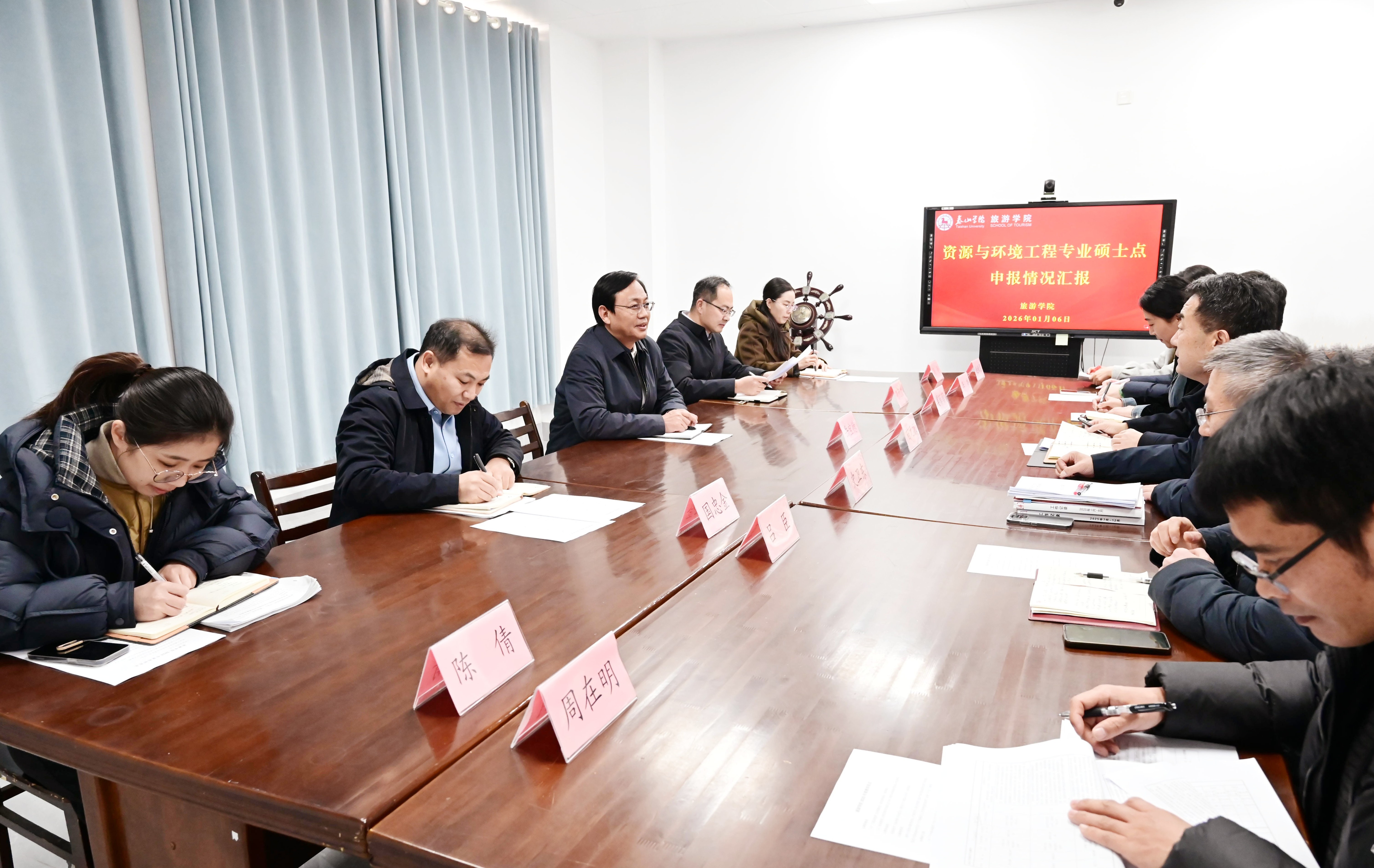岳宝德认真听取了两个学院关于学科专业建设、学位点建设以及人才培养方面的工作汇报,对已取得的阶段性成效给予肯定,并就下一步发展提出三点要求:一是要提高政治站位,勇担转型发展使命。要深刻把握学科专业调整优化是服务国家战略、适应产业变革的必然要求,树立前瞻视野,打破思维定势,主动将学院发展融入学校整体改革与区域产业升级进程,以高度的使命感、紧迫感和责任感,切实肩负起推动学科专业内涵提升与人才培养模式创新的时代重任。二是要坚持特色引领,打造学科专业品牌。要立足学院现有基础与区域需求,通过差异化、特色化发展路径,着力培育具有核心竞争力的学科方向。机械工程学院要聚焦智能制造、高端装备等新型工业化方向,深化产教融合与校企协同,强化学生工程实践与创新能力培养;旅游学院要紧扣文旅融合、数字文旅等新兴业态,加强与政府、行业对接,积极赋能地方文旅规划、乡村振兴与业态创新,提升智库服务能力与社会贡献度。三是要强化协同攻坚,力争学位点建设突破。要充分认识学位点建设对学院长远发展的战略意义,系统总结既有基础,深入挖掘比较优势,整合全院资源力量,在方向凝练、成果整合、材料撰写等关键环节持续发力,形成全院联动、合力攻坚的工作格局,以久久为功的决心与韧劲,力争在学位授权审核中实现突破,为学院高质量发展提供坚实支撑。