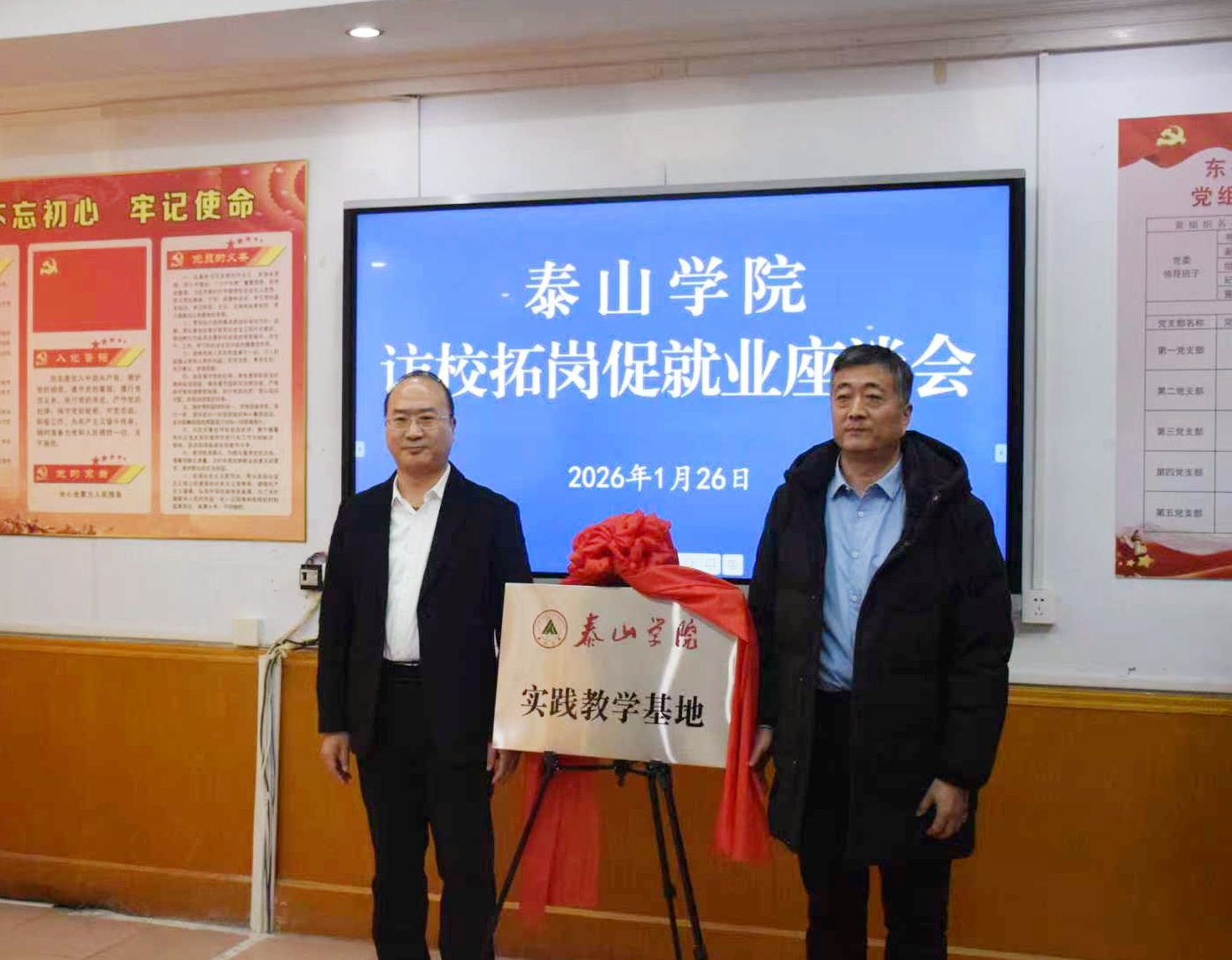 魏新江分别与东平高级中学党委书记范思杰、州城街道第二中学校长韩波共同为“双师型教学基地”和“实践教学基地”揭牌。双方围绕如何进一步落实基地建设、细化人才供需对接、深化思政课教学改革等具体事宜进行了深入友好洽谈,并达成广泛共识。
