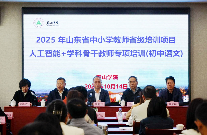 10月14日,学校举办2025年山东省中小学教师省级培训项目“人工智能+学科骨干教师(初中语文)”专项培训班。本次培训由山东省教育厅主办,泰山学院教务处和文学与传媒学院承办。山东省各市初中语文骨干教师共50人参加培训。开班仪式上,党委委员、副校长魏新江致辞,他代表学校对各位骨干教师的到来表示热烈欢迎。魏新江介绍了学校的发展历史与办学特色,指出本次培训对于凸显学校教师教育特色、更好地服务地方基础教育具有重要意...