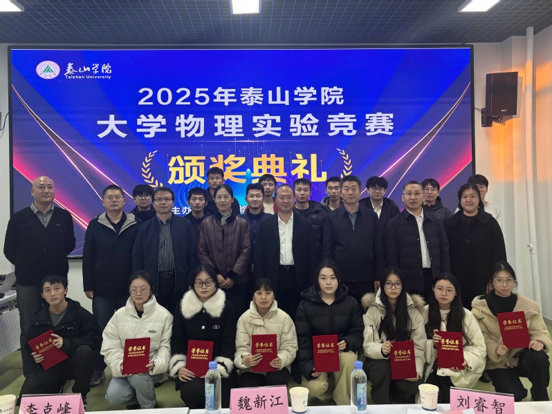 11月18日,泰山学院2025年大学物理实验竞赛颁奖典礼在校本部创新创业中心举行。党委委员、副校长魏新江出席活动并讲话,实验教学管理中心、物理与电子工程学院、生物与酿酒工程学院、机械工程学院相关负责人参加活动。魏新江对大赛成功举办表示祝贺,对参赛选手的出色表现给予高度评价。他指出,大学物理实验不仅是理工科学生学习物理知识的重要途径,更是培养创新思维和实践能力的关键环节。学校高度重视学科竞赛工作,始终秉持“...