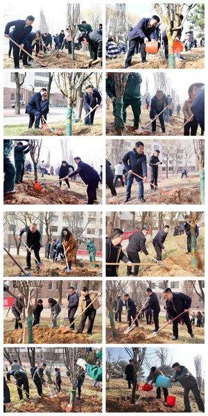 春光明媚,万物复苏。在第48个中国植树节,学校开展义务植树活动,以实际行动践行绿色发展理念,共建生态和谐校园。学校党委领导班子成员岳宝德、彭淑贞、贾军、李峰、田杰昌、张守凤、李向影、魏新江、李飒、张伟参加活动。在校领导的带领下,各部门和各二级学院的师生代表们拿着锄头、铁锨、水桶,在1号实验楼北侧坡地的树苗种植区,几人一组,铲土、扶苗、踩土压实、浇水,分工明确、配合默契。在植树过程中,大家精神饱满、干劲...