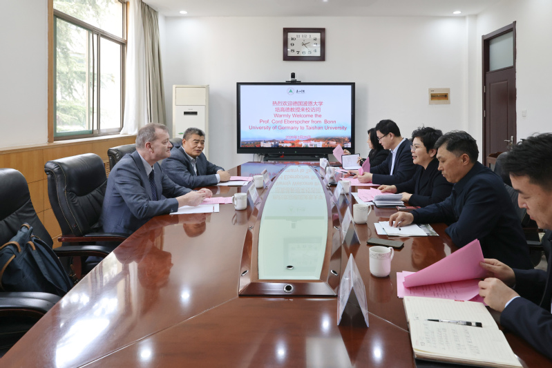 3月25日下午,德国波恩大学汉学院院长、历史学教授培高德(Cord Eberspächer)在岱岳区欧美同学会会长张树君的陪同下来访我校。党委副书记、校长彭淑贞,党委委员、副校长张守凤会见客人,国际教育学院、历史学院、外国语学院及国际交流合作处相关负责人参加会见。彭淑贞在接待室正式会见培高德教授,并代表学校为其颁发了泰山学院特聘教授证书,期待培高德教授的来访进一步助力我校在人才培养、科学研究与学科建设等方面的国际化...