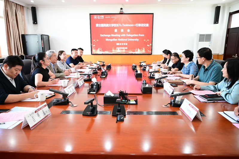 9月18日上午,蒙古国民族大学校长策·朝勒门、蒙古国环球领袖大学培训部经理巴依斯格愣、中宝惠集团COO李晟尧等一行7人访问我校,党委委员、副校长张守凤在第二会议室会见了来访客人。科研处、国际交流合作处、国际教育学院等部门相关负责人参加交流。国际教育学院主要负责人主持座谈会。 座谈会上,张守凤对策·朝勒门一行的到访表示热烈欢迎。她介绍了学校的发展历程、办学成果及学科建设等方面的基本情况,强调学校始...