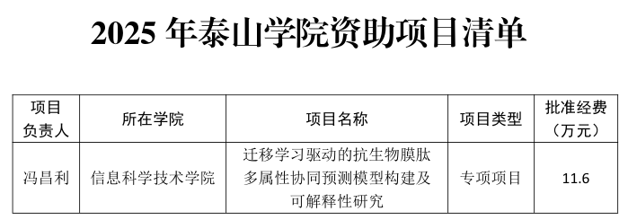 近日,国家自然科学基金委员会公布了2025年专项项目评审结果。学校信息科学技术学院冯昌利副教授申报的“迁移学习驱动的抗生物膜肽多属性协同预测模型构建及可解释性研究”项目成功获批,资助经费11.6万元。该项目聚焦抗生物膜肽研发中的关键瓶颈问题,创新性地融合迁移学习与多属性协同建模技术,针对抗生物膜肽的功能特性开展系统性预测研究,构建具有可解释性的智能预测模型。项目旨在破解传统方法在小样本、高维度条件下预测精...