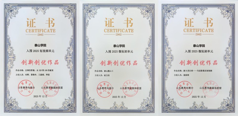 近日,山东教育电视台、山东教育融媒体联盟公布了2025年度“山东教育融媒·泰山奖”评选活动结果,学校选送的短视频《自律的答案,从320到180的蜕变》、微短剧《泰山挑山工》《新大圣归来——当皮影遇见短视频》3部作品从众多参赛作品中脱颖而出,获评大赛创新创优作品。作为山东教育融媒体联盟会员高校,学校融媒体宣传工作始终坚守立德树人根本任务,深耕校园文化传播与育人叙事创新,聚焦“泰山文化”“师生成长”“校园特色”,精...