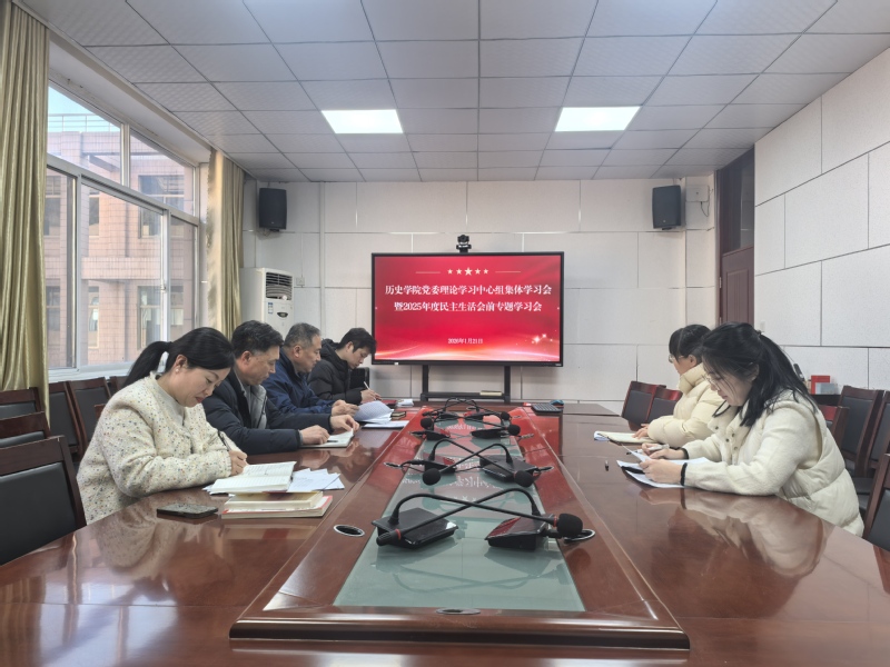 1月21日,历史学院召开2026年第1次党委理论学习中心组集体学习会暨2025年度民主生活会前专题学习会。学院党委主要负责人主持学习会,党委理论学习中心组成员参加学习。参会人员深入学习《中国共产党章程》、习近平总书记关于党的建设的重要思想、关于加强党的作风建设的重要论述,重点学习习近平总书记在中央政治局民主生活会上的重要讲话精神以及中国共产党第二十届中央纪律检查委员会第五次全体会议公报,为高标准高质量开好2025...
