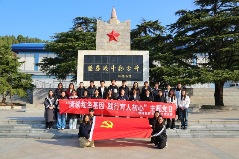 11月4日,教师教育学院学生党支部前往肥城陆房突围胜利纪念馆,开展“赓续红色基因 践行育人初心”主题党日活动。踏入纪念馆广场,党员们怀着崇敬之心,在鲜红的党旗下整齐列队,庄严地重温入党誓词。在讲解员的引领下,大家有序步入馆内。一幅幅珍贵的历史图片、一件件饱经战火的文物、一份份承载记忆的文献资料,无声却有力地诉说着革命先辈们在陆房突围中英勇顽强、浴血奋战的壮丽史诗。大家驻足凝视,认真聆听,深切感受到先烈...