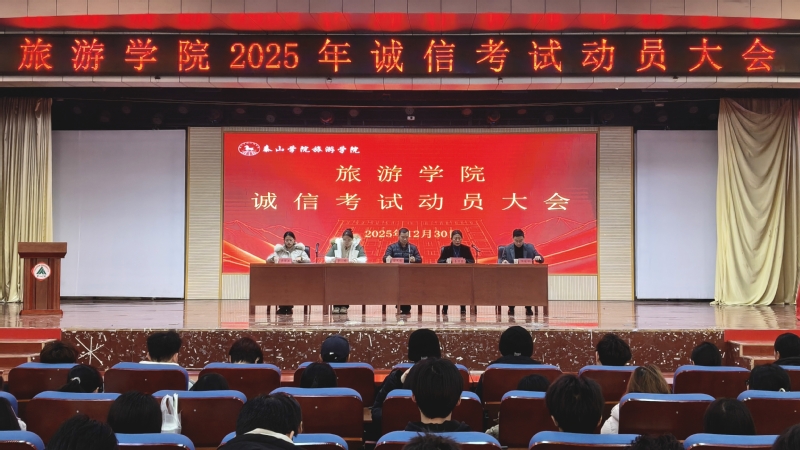 为严肃考风考纪,引导学生诚信应考。近日,旅游学院分别于校本部文旅楼1009教室、南校区新生一部大学生活动中心召开2025年秋季学期诚信考试动员大会。学院领导班子成员、辅导员出席会议,2023级、2024级学生干部、2025级全体学生参加会议。会议宣读《泰山学院考场规则》《泰山学院学生违纪作弊处理规定》《旅游学院考试方案》,明确诚信考试的重要意义、考试纪律的严肃性以及违纪作弊的严重后果。学生代表韩雪晴和董芷含上台发言,...