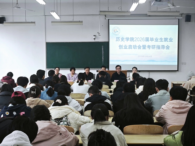 10月24日上午,历史学院在校本部1号综合楼A4011教室召开2026届毕业生就业创业启动会暨考研指导会。历史学院领导班子成员、教师代表、辅导员及全体2026届毕业生参会。学院党委负责人主持会议。学院主要负责人结合当前就业形势,对毕业生提出三点希望与要求。一要认清就业现状,合理调整就业预期,树立“先就业、再择业”的择业观;二要坚定就业信心,提升就业本领,精准发力,合理备考;三要强化责任担当,深刻认识个人就业与学院发...