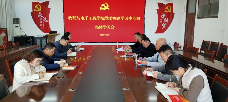 11月25日上午,物理与电子工程学院在二号综合楼B3015会议室召开第11次党委理论学习中心组专题学习会,深入学习领会党的二十届四中全会精神。学院党委理论学习中心组成员参加学习研讨,学院正处级干部、各党支部书记列席,会议由学院党委主要负责人主持。会议集中学习《中国共产党第二十届中央委员会第四次全体会议公报》。会议认为,党的二十届四中全会恰逢“十四五”收官在即、“十五五”谋篇蓄势的关键节点,是全面建设社会主义...